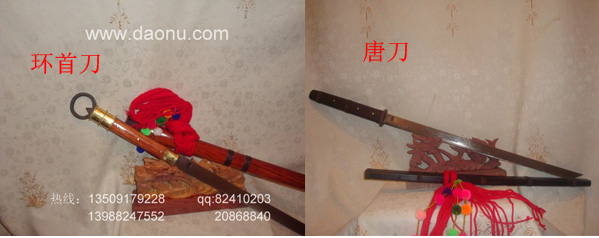 除了进一步进改善铸造工艺,唐刀在外观上也有很大的改善。唐刀去掉了汉刀刀首的扁环,加宽刀身,并且延伸刀柄,使唐刀能够双手握柄。