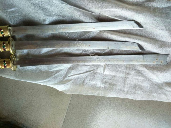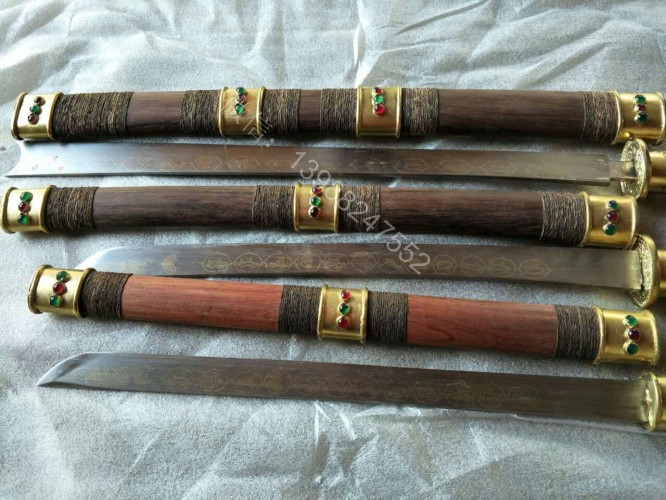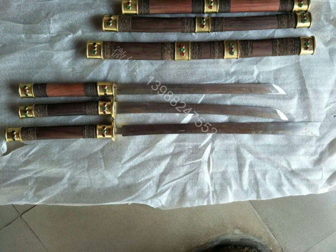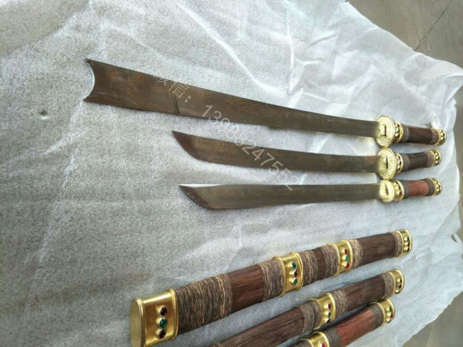 4、刀鞘包铜不能用普通的铜皮,必须要非常厚的加厚铜皮(这点非常难做,第一是厚铜非常难找,第二是因为这都是手工包的,这种做法很难让那么厚的铜非常合 缝的包在刀鞘上,中间容易有缝隙)