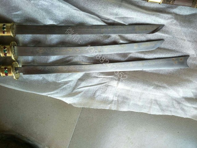 以上是这位客户的基本要求,这些要求看似容易,其实手工操作起来确很不容易,中间的加工难度没做过这个的朋友是想象不出的!所以这几把刀工期很长,而且单价很高!但是我们要尊重每位客户的独特审美,因为这就是他心目中的最爱!下面是加工过程中随意拍摄的几张图片,大家可以看下。