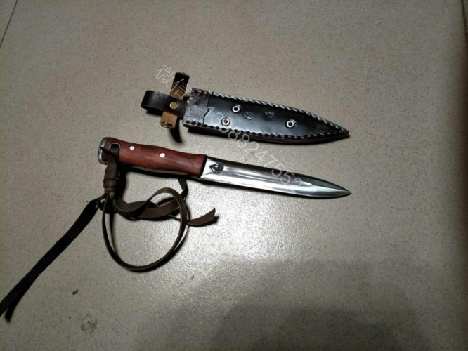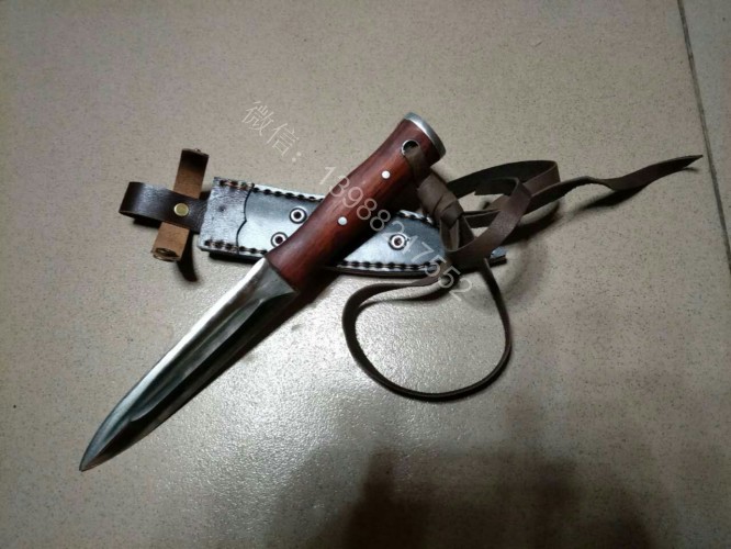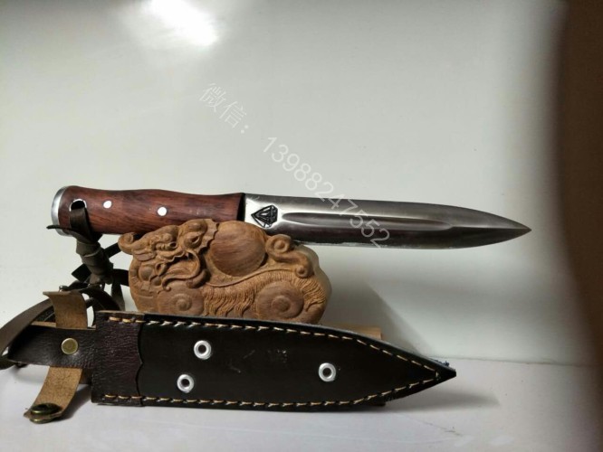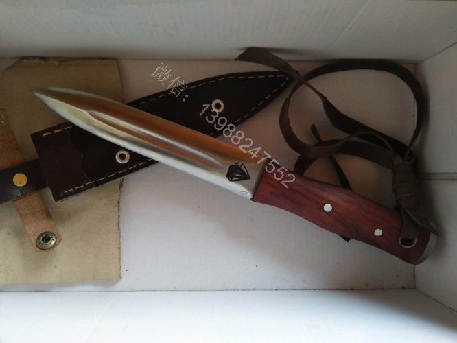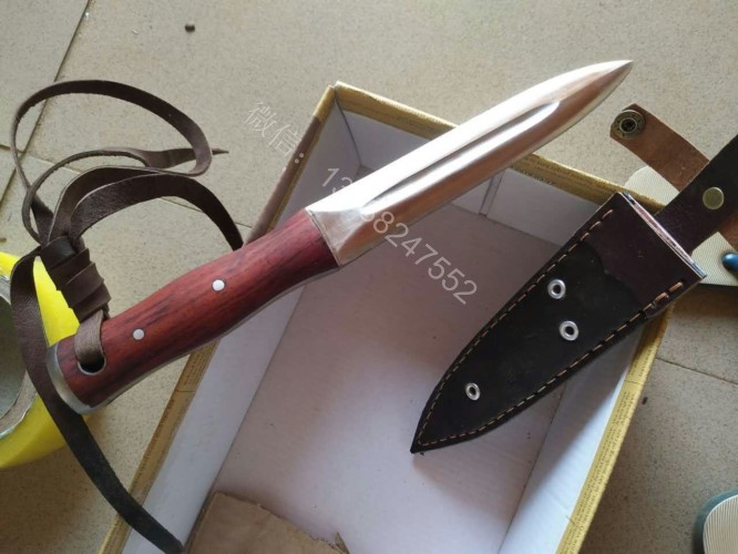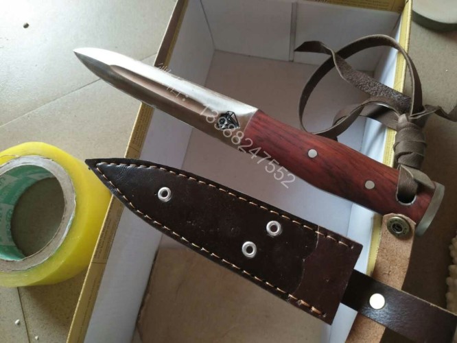 这把户撒进口钢匕首钢材是我们独家使用的高档进口钢材(为投资商提供)经过实际锻打对比,此钢材的性能超过很多其他高档进口钢材,无论硬度和防锈能力都是大部分钢材所无法达到的,这种钢材经过锻打,如果厂家深冷热处理,硬度达到62hrc,我们是传统配方淬火,硬度在60hrc 左右,而且防锈能力超好,超过了测试过的任何可锻打钢材,用此种钢材做好的刀可以达到刮毛的同时砍铁不伤的效果,这是其他钢材制作的刀具很难达到的。下图展示的是用这种钢材锻造的匕首,一体全龙骨刀身,红木手工刀柄,握感极佳,刃口锋利坚硬,简洁便携,非常适合户外使用!