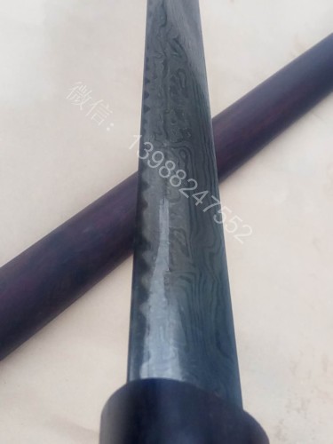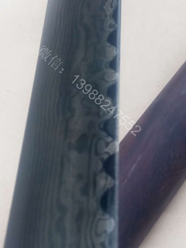 下面介绍的这款流水马牙纹唐刀由景颇族匠人江齐亲手锻造,大家仔细看,这种花纹并不是采用市面上那种直接采用花纹钢锻造而成,而是用两种以上的钢材通过手工糅合团打而成,完全恢复了古代锻打技艺,此种手工锻造花纹的技术在国内还是很少有人会做的,其锻打难度也是相当之高!工期较长!用这种方法锻造出的纹理每一把都是独一无二,没有两把是完全一样的花纹,这把马牙纹唐刀纹理非常流畅美观,刃口有形如马牙的花纹,非常罕见,这并不是平常所见的烧刃纹理!