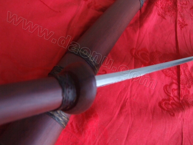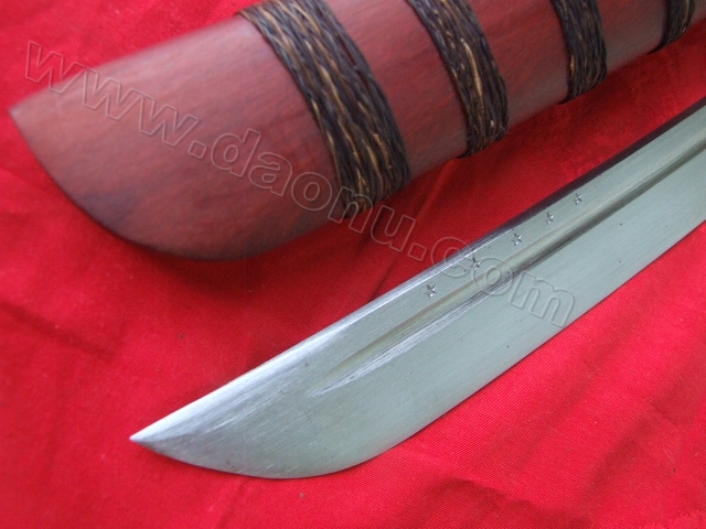 刀背厚:7毫米产品介绍: 此刀由户撒名匠全手工打制的极品马刀,刀身采用汽车弹簧钢板手工锻打淬火,刀身精雕龙凤等花纹,精铜缅甸紫檀木刀装,可过竹削铁!收藏极品!