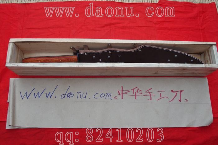 产品介绍: 本站隆重推出此刀!此刀资深刀友提供大体想法,由我们中华手工刀网联合户撒名匠线乔发和项老赛儿子联手打造现中国最大、最具有霸气的全手工狗腿刀,整刀重达6斤以上!采用进口弹簧钢板(也称高锰碳钢,我们站所有的刀都是用这种钢材打造的),刀条打制时间整整两天,在刀匠的挥汗如雨中,这把震撼性的邹品诞生了!刀一出来给刀友们的第一感觉是大气如虹,如同兵器中的霸王项羽,刀寒光闪闪,砍铁不伤,刀刃雕工细腻如丝,刀柄采用优质酸枝木手工制成,刀柄七颗目钉全龙骨制作,结实异常!现在请大家好好欣赏吧!收藏极品! 此刀超重,购买时请量力,呵呵。