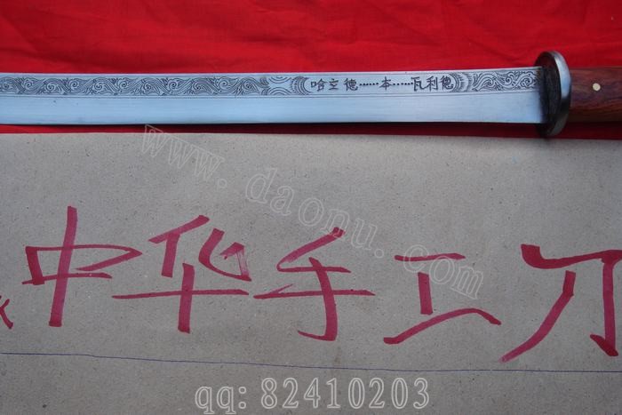 产品介绍: 本站特别推出此刀!此刀也是一起锻造大狗腿那位资深刀友提供大体想法,由我们中华手工刀网联合户撒名匠线乔发倾心打制而成,采用进口弹簧钢板(也称高锰碳钢,我们站现今所有的刀都是用这种钢材打制而成),刀条、刀型经名匠乔发仔细推敲精心制作,同样在刀匠的挥汗如雨中,这把让人不寒而栗的极品蒙古弯刀出世了!此刀寒光闪闪,砍铁不伤,刀刃雕工细腻如丝,精雕龙凤栩栩如生,如果在古代这把刀的杀伤力是非常强的,刀柄采用优质酸枝木手工制成,刀柄六颗目钉全龙骨制作,非常结实,再怎么挥砍也不会有任何意外!走过路过不要错过!收藏极品!