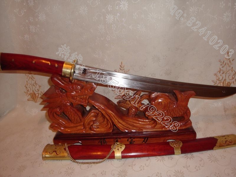户撒刀介绍: 此刀样式美观流畅,户撒传统小马刀风格,加上名匠乔发的个人发挥使此刀显得更加精美、彪悍。此刀用优质汽车弹簧钢板(也称高锰碳钢,我们站现今所有的刀都是用这种钢材打制而成)经户撒名匠线乔发精心打制而成,独到的淬火工艺,经过无数的反复锻打而成,此刀口坚硬寒光闪闪,可轻松斩过竹削铁,刀身雕工细腻如丝,精雕龙凤栩栩如生,这把刀装为缅甸精品酸枝木(红木中最好的一种木料,油性大,分量重,在北方干旱情况下不开裂,本站极品刀剑都推荐此种木料)刀鞘包铜精心而成。爱刀者理想收藏!请勿错过。此刀订货者众多,理想的收藏实用佳品!购买方法:找到喜欢的作品,请联系客服进行购买,qq:82410203 手机:13509179228 13988247552旺旺:照雪玉麒麟 ,货款支付方式:新客户推荐淘宝链接支付宝方式,绝对保障客户的利益;老客户可采取银行付款方式(方便我们做银行转账,这是对我们的有力支持,我们对这样可顾客表示感谢)