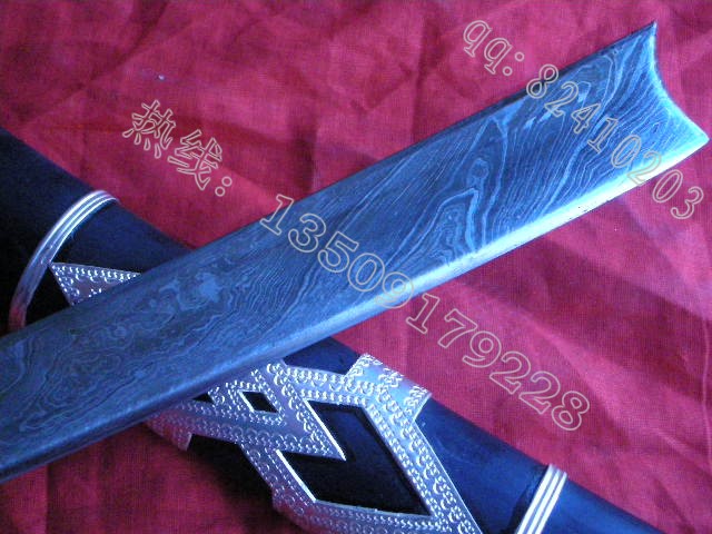 户撒刀规格: 全长83CM左右 把22CM左右 宽3.3CM左右户撒刀介绍: 此刀由户撒极具勤奋和天赋的工匠江齐精心打制而成,整个打刀工艺及钢材选用,历时三年研制过程,投入大量人力财力,期间他认真学习各家所长,对钢材结构进行了深入的学些和探索,终于全手工冶炼锻打的流花刀得以和大家见面了!此刀手工传统折花技艺,手工折打浪波回旋纹路,生动活泼,纹路多变,富有动感;全刀糙面双色(也可订打镜面)对比强烈,乌木缅银把与壳,独门双次淬火技艺,可砍铁(也可按要求订打功能)收藏极品,工期30天。