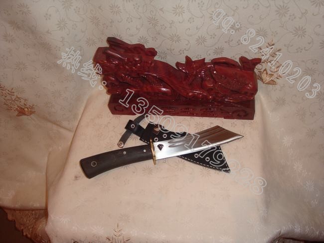 户撒刀介绍: 此刀由户撒名匠黎有兴(以前给娄四东做刀的刀匠)全手工打制的极品独家进口钢材小砍刀,刀身采用本站独家进口的高档制刀材料经刀匠反复锻打、淬火精工制成,因此种钢材不同于当地各种材料,具有极高的防锈能力及超强硬度,此刀锻打难度极高,如不采用特殊锻造方法报废率很高,经过本站成员与刀匠的反复测试,终于完满完成,此刀硬度极高所以刀面雕花几乎不可能,凿子被报废!此刀完成后获得了刀友的热烈好评,刀达到的性能可在几乎刮汗毛的情况下砍铁钉刀刃无损(测试视频:http://www.daonu.com/article.php?id=82),并且防锈能力是当地钢材不能企及的,极具收藏价值,希望大家不要错过。联系电话:13988247552 qq:82410203