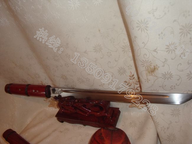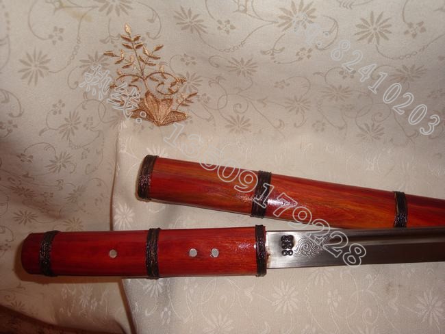 产品规格: 全长59CM左右 刃长:40CM左右 刀刀背厚:7MM左右制作工艺:户撒传统手工锻打工艺、秘传水淬油淬热处理工艺、 民族雕花特色、 传统刀鞘制作 优等缅甸红酸枝