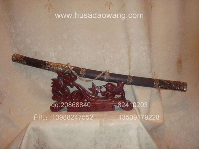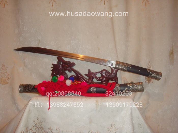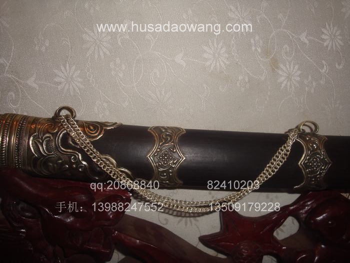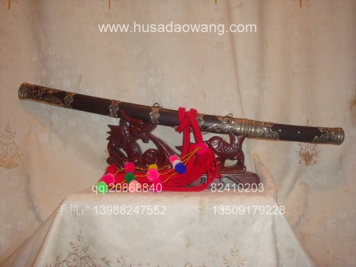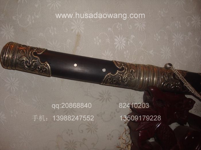 户撒刀名称: 户撒刀王(阿昌刀)之黑檀木缅银装精品苗刀