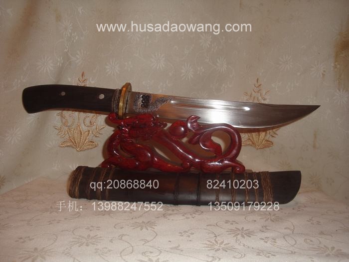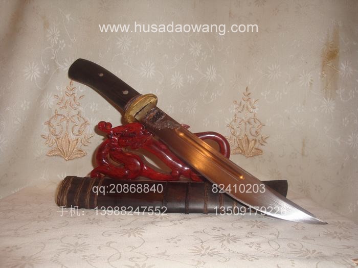 户撒刀(阿昌刀)说明:户撒刀(阿昌刀)全手工打制,韧性和硬度达到高度统一,刀采用局部淬火,刃口坚硬刀背稍软,以保证刀在受大力冲击情况下避免断裂,具体手工刀和机制刀的区别大家可参看本网站宝刀资讯栏目了解。手工产品把把略有不同,所以大家看到商品图片时如需订做,所得产品会略有差别(例如雕花、长度或规格等)当然大体不会改变,每把刀都是独一无二的,每把刀都倾注了刀匠独特的审美观和灵魂,这也正是手工刀魅力所在。