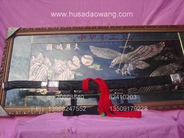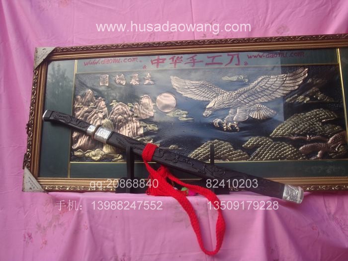 商品名称: 户撒刀王(阿昌刀)精品乌木刻鞘斩马刀(线乔发)
