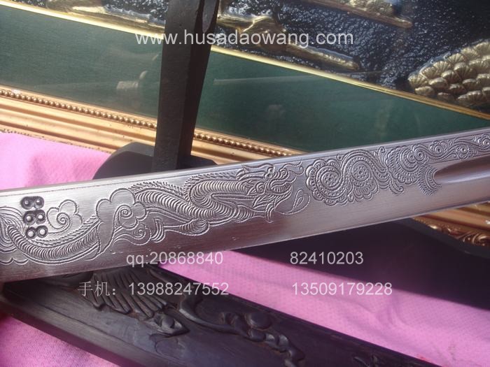 商品介绍: 此刀为户撒经典乌木斩马刀款式,刀条由户撒刀迪派传人线乔发全手工锻打而成,钢材采用军用车弹簧钢甲板,传统百年户撒锻造工艺,经过匠人反复锻打,秘方复合淬火,刀身配以民族手工雕花工艺,雕刻龙凤等花纹,此刀传统军用斩马刀刀型,配重合理,挥砍有力!刀鞘为珍贵乌木,刀鞘及刀柄表面手工雕刻龙凤,刀鞘两端包黄铜,整体古朴大气,极具美感!此刀刃口坚硬,可过竹削铁威力强大,希望买家朋友认清正品及时收藏。