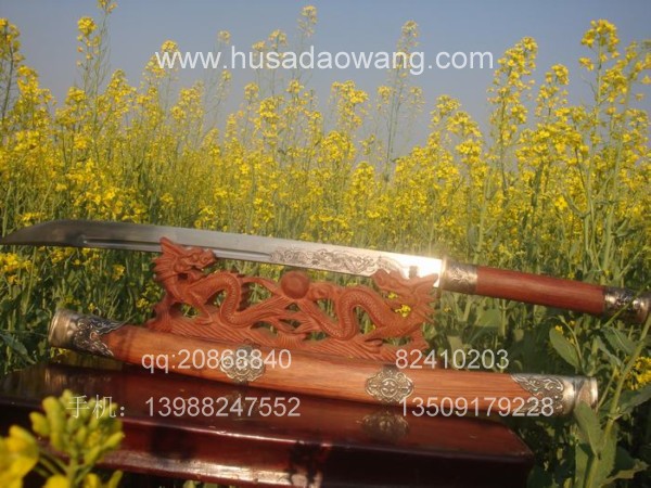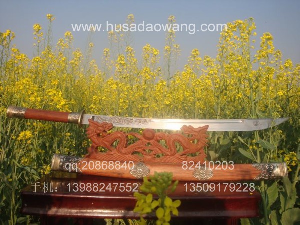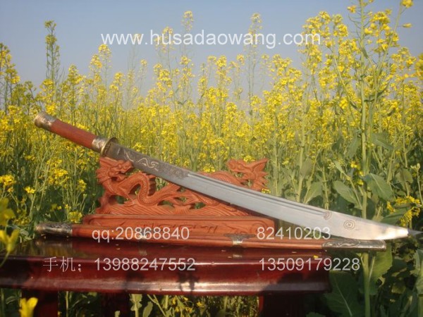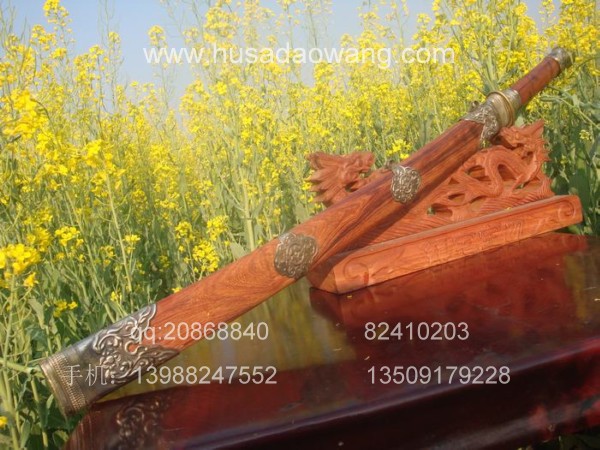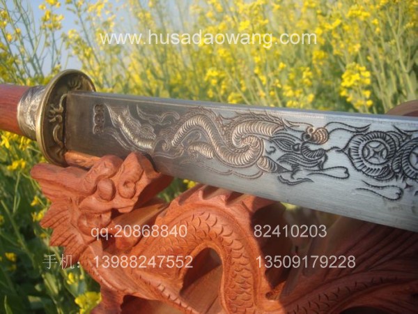 商品介绍: 此刀为阿昌族户撒第一刀匠线乔发全手工精心打制,刀条采用优质军用高碳锰钢,传统锻打并民族雕花工艺,千锤百炼后秘方淬火热处理而成,刀身传统民族苗刀款型,刀刃流畅,刀身乔发亲自雕龙,神气活现,民族风味独特,粗锋可砍铁丝,细锋可轻松过竹,刀柄刀鞘为精选天然珍稀红酸枝,精选老料,刀鞘精包缅银,民族做法。经典民族收藏。请大家抓紧时机选购收藏。