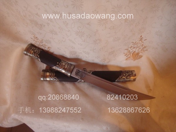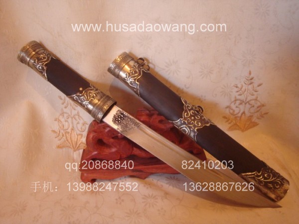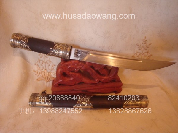 商品介绍: 此刀为户撒刀迪派传人名匠线乔发全手工精心打制,刀身制作采用优质军用高碳锰钢,传统锻工艺锻打,刀身力求简洁,经千锤百炼后秘方淬火热处理而成,经典户撒小刀刀型,刀刃线条流畅,刃口刚火极好,粗锋可砍铁不伤,细锋可轻松剃毛,刀柄刀鞘为精选天然珍稀黑檀木,精选老料,刀鞘精包缅银,经典民族收藏。请大家抓紧时机定制。