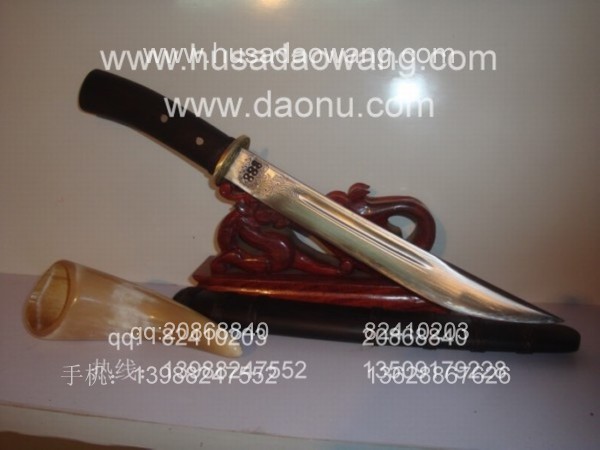 制作工艺:户撒传统手工锻打工艺、秘传水淬油淬热处理工艺、 民族雕花特色、 传统黑檀木刀鞘制作、手工缠棕