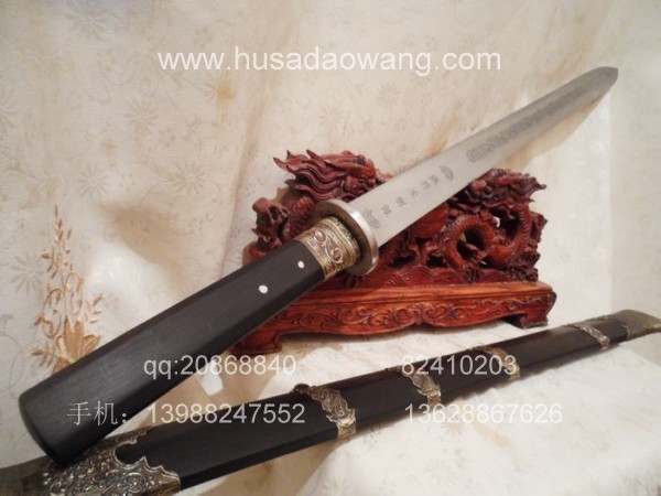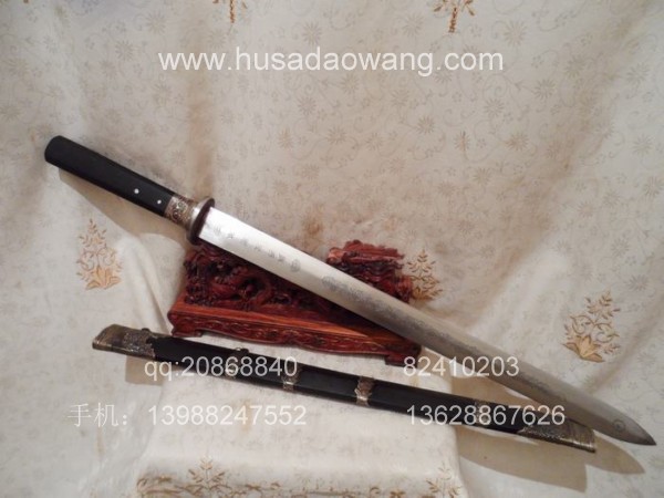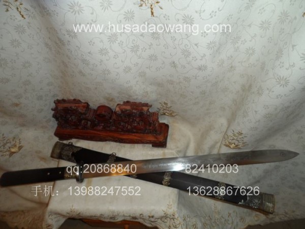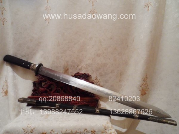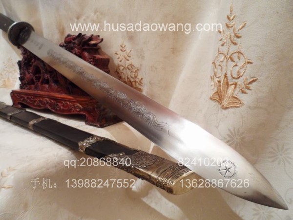 规格: 全长:95CM左右 刃长:70CM左右 刀柄25CM左右 宽带4.8CM左右介绍:此作品是户撒刀第一名匠线乔发全手工打制,宝剑剑条为精选进口弹簧钢,由名匠采用传统户撒锻打工艺纯手工千锤百炼锻制而成,剑条淬火为古法配方完成,刃口经过刀匠数十年打刀经验的洗礼,性能卓越,刚柔相济,粗锋可砍铁不伤,细锋可轻松过竹。此剑刃宽达到4.8厘米左右,手感沉重,因而威力强大,具有宝剑天然的君子风范但又不失霸王之气。剑鞘和剑柄精选正宗印度黑檀木,装饰为手工包缅银装饰。此剑把气如虹放在家里具有强烈的辟邪作用,欢迎刀友和收藏爱好者前来定制。