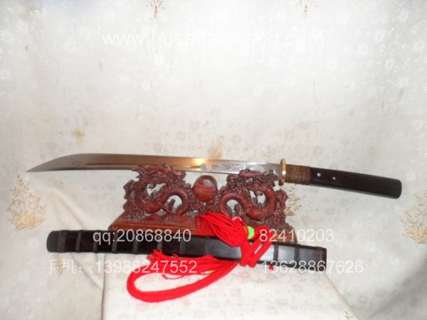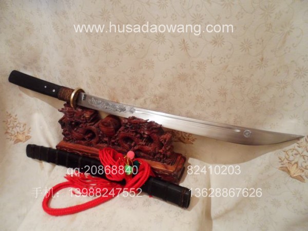 商品介绍: 此苗刀为户撒经典苗刀款型,质朴刚劲的民族风格让人回味起远古的冷兵器时代。刀条由户撒刀锻打工艺嫡派传人线乔发全手工采用优质军用高碳锰钢精千锤百炼而成,刀型流畅,劈砍生风。刀条成型后,经过匠人炉火纯青的淬火技艺热处理而成,刃口刚火极好,刀条刚柔相济,粗锋可砍铁不伤,细锋可轻松过竹,刀柄刀鞘为精选天然珍稀老料非洲黑檀木,外缠民族特色棕丝,护手根部加强缠棕,使得劈砍发力更加直接,也更结实耐用。民族收藏必选!