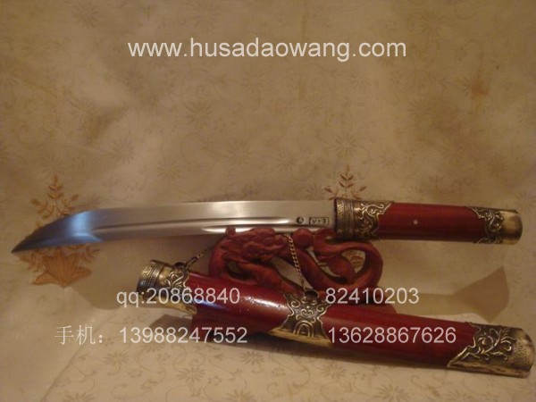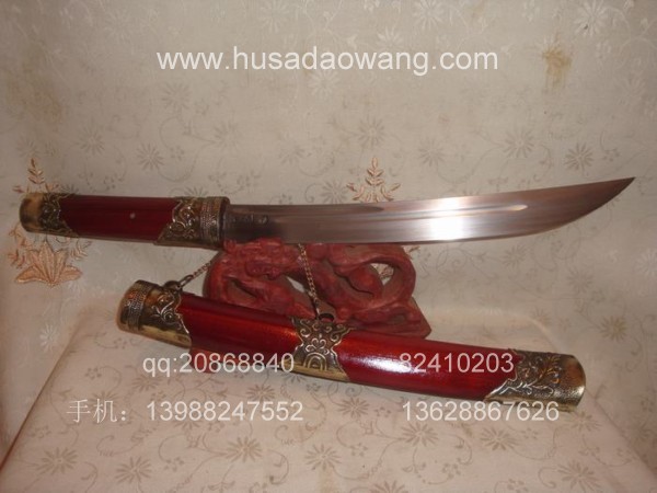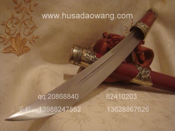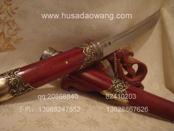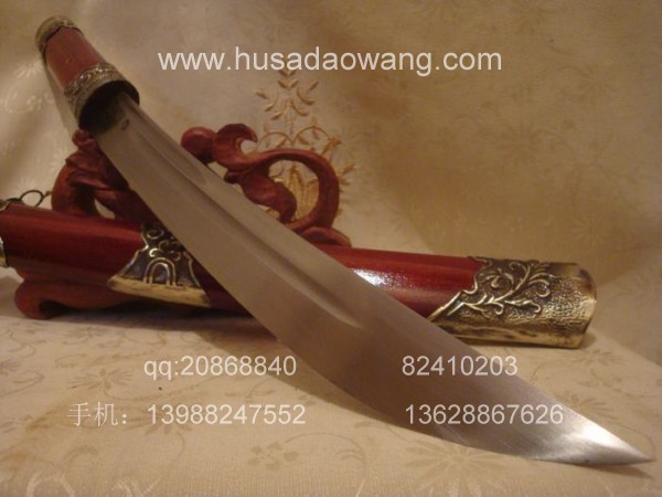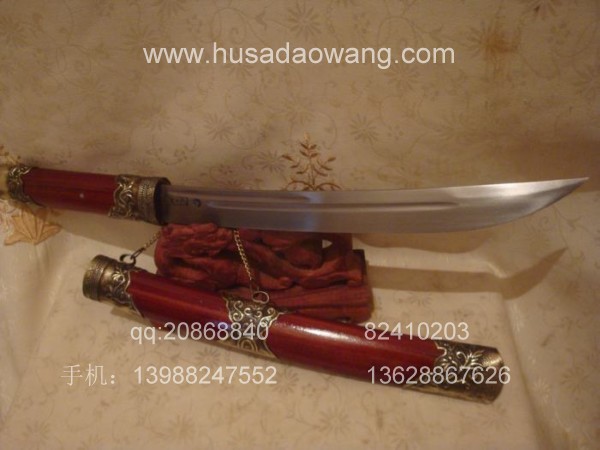 商品介绍: 此刀为过户撒刀优秀匠人全手工精心锻造而成,刀身材料采用优质军用高碳锰钢或进口车弹簧板,刀条制作采用古老的户撒刀炭火锻打工艺,刃口经千锤百炼后配方淬火热处理而成,当地传统经典小苗刀刀型,刀刃流线优美,刃口刚火极好寒光闪闪,粗锋可砍铁不伤,细锋可轻松剃毛,刀柄刀鞘用名贵缅红木料也称大叶紫檀制作而成,精选好料,颜色深红华贵,刀鞘精包缅银,经典户撒小苗刀款型,值得拥有!