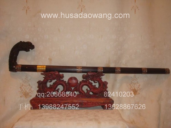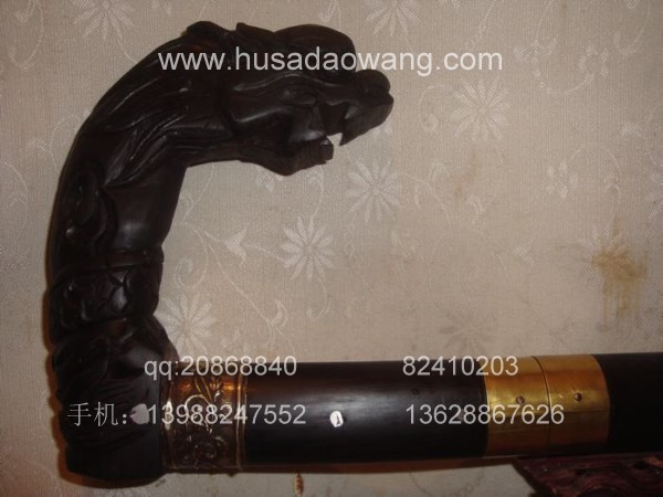 商品名称: 户撒刀王(阿昌刀)极品黑檀龙头手杖刀(测试视频)线乔发精工制作!