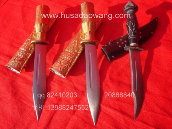 1、刀身用料不同:户撒刀(阿昌刀)主要采用的废旧汽车弹簧钢、高碳钢、军用合金钢等,品种多样;目前本站采用的多为精选优质弹簧钢、优质轴承钢、高档进口工具钢(性能防锈力都大为提高)而机制刀具,采用的材料较为单一,不讲求研发和创新。