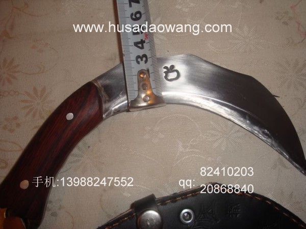 ),刀型采用世界名刀大名鼎鼎的爪子刀型,刀条经过匠人千锤百炼后配方淬火热处理而成,刀身形状为新月弯刀爪子刀型,刃口锋利,此种刀型设计非常适合短距离使用威力强大,让人胆寒。刀柄为纯手工制作的精品黑檀木或红酸枝刀柄,刀柄尾端有三角铁设计,以利于危急时刻打碎车玻璃逃生使用。此刀为防身利器,欢迎大家选购。
