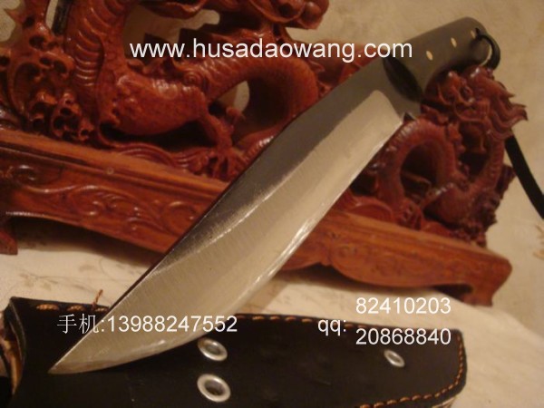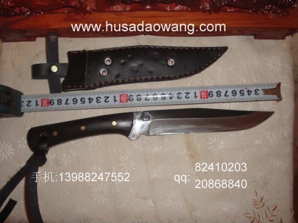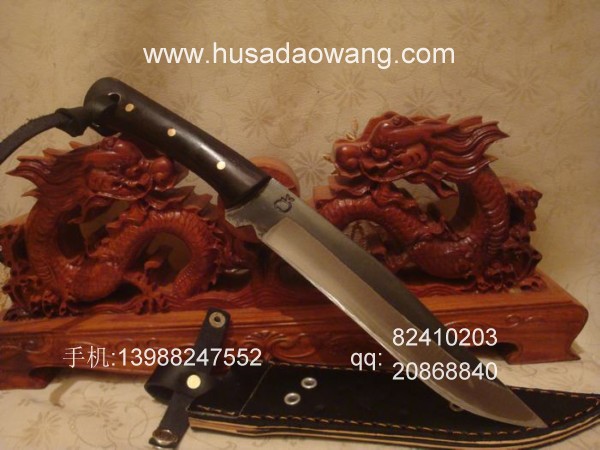 产品介绍: 此刀刀型款式为户外刀大名鼎鼎的款式,本站采用全龙骨合计,使得整刀实用耐用度大大增强。刀条采用优质军用弹簧钢传统方法反复锻打而成,其淬火工艺为户撒秘传配方淬火。刀条局部淬火,使得刀刃的硬度和刀身刀背硬度不同,刃口硬度高于刀身硬度从而达到刚柔相济之妙效,刀柄为名贵耐用的黑檀木夹柄打铆钉,使得户外暴力使用中无论怎样用力挥砍硬物也不会产生任何损伤或晃动,此刀配重极为舒适,穿刺劈砍皆宜,方便携带,户外野营不二选择。