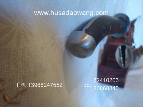 4、刀条硬度及性能不同:户撒刀(阿昌刀)因为采用了局部淬火工艺,且材料不一,所以,刀与刀的硬度是不同的,就是同一把刀子,刀背刀口、刀根刀尖等硬度也不一样,一般说来刀条根部因很少使用,淬火很浅,刀尖细小部位从实用性来讲为了防止过硬而断裂,所以刀尖也很少淬火,最终讲的是刚柔相济;而机制刀具,硬度单一,刃口硬度经常不能达标,一般销售时只标识一个硬度,如57;
