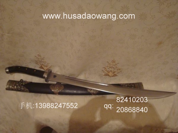 商品介绍: 此刀为当今户撒顶级性能的高档进口钢材系列,刀条为户撒刀工艺名匠黎有兴采用本站独家进口的高档钢材,采用特殊锻打方式精锻而成,此种钢材性质优良结构紧密锻打难度极高,锻打完成后,刃口再经数次特殊方法淬火而成,宝刀做工扎实,采用最为结实耐用的全龙骨结构,注意此刀刀柄尾端手工加上的金属尾柄,此种尾柄美观而且实用,在户外完全可以当榔头用哦!刀型漂亮,线条流畅,刃口硬度极高,反复淬火回火后刃口达到刮毛还能砍断铁丝的境界(不过长刀推荐锋利即可,更为实用),刀身防锈能力也大大超过户撒当地的高弹锰钢(汽车弹簧弓板)系列,因而收藏价值极高。此刀刀鞘采用高档非洲黑檀木外包缅银,整刀彰显王者风范!此宝贝方便户外和私家车携带,收藏实用双重功能,大家抓紧时间定制!