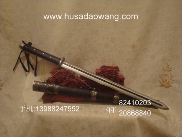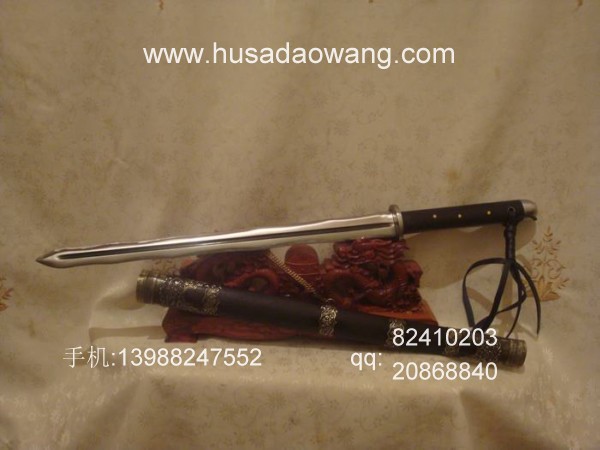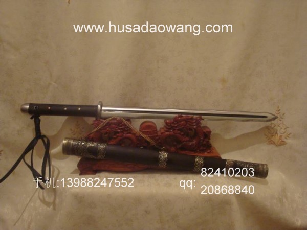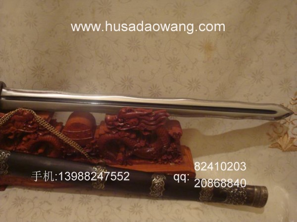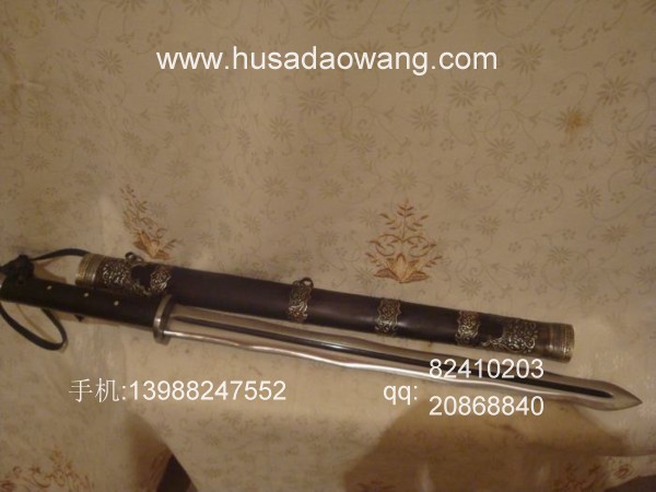 商品介绍: 此剑为本站独家进口的高档进口钢材系列,属户撒顶级刀具。此剑条为户撒阿昌族名匠黎有兴采用本站独家进口的高档钢材,采用特殊锻打方式反复锻打而成,此种钢材质地优良结构紧密,因而锻打难度非常之高,剑条必须经过特殊锻打方法长时间反复锻打,刃口再经数次特殊方法淬火而成,此宝剑做工精美,剑柄采用最为结实耐用的全龙骨结构,宝剑尾端加有钢制护尾,使得刀柄尾端不仅结实耐用而且增加了榔头的功能,此剑刃口采用优美的波浪型设计,虽然手工难度很高,然而威力增加并且极具美感!宝剑刃口硬度极高,反复淬火回火后刃口达到接近刮毛还能砍断铁丝的境界,剑身防锈能力同时也大大超过户撒当地的高弹锰钢系列,因而有着很高的收藏欣赏价值。此剑剑鞘采用进口非洲黑檀木外包缅银,整剑彰显王者风范!此剑长短也方便户外和私家车携带,收藏实用双重功能,大家抓紧时间定制!