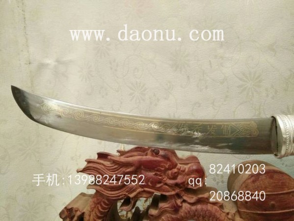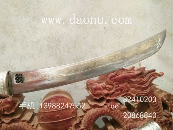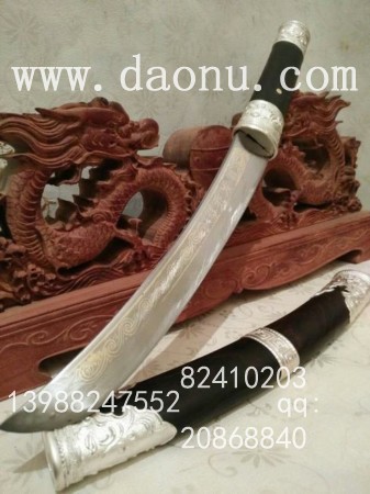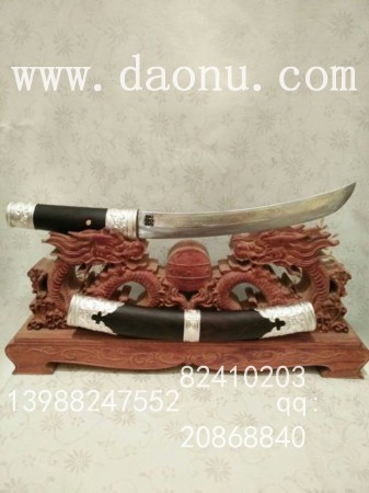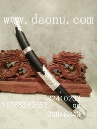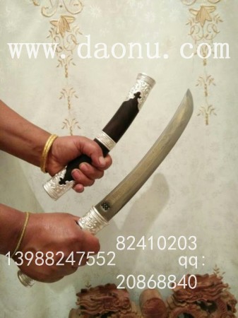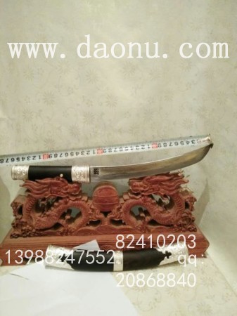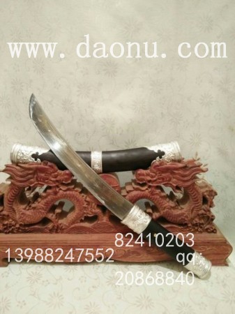 工艺特点:线乔发走铜工艺 小马刀造型 黑檀木缅银刀装 传统户撒刀锻打工艺 名匠线乔发制作 配方淬火