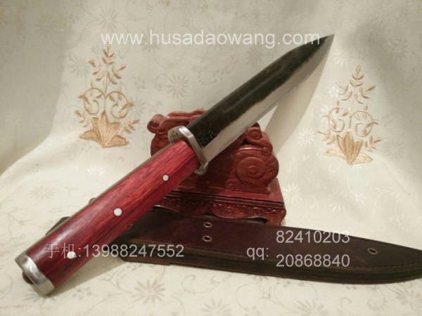 作品介绍: 次刀由户撒名匠黎有兴全手工打制的高档进口钢材极品实用小猎刀,刀身采用本站独家进口的国外名刀匠专用钢材,纯手工锻打淬火,其淬火工艺相当复杂,要求对火候的掌握非常独到,锻打过程亦是如此,非普通刀匠可以完成,刀打成后刃口非常坚硬,经人工冷磨又可非常锋利,刮毛的同时可以削铁,此刀采用全龙骨,刀柄尾端手工加钢垫,在野外可做临时锤击使用(独家设计制作),刀柄采用进口酸枝木手感和防开裂效果极佳,欢迎广大刀友及户外爱好者前来定制。
