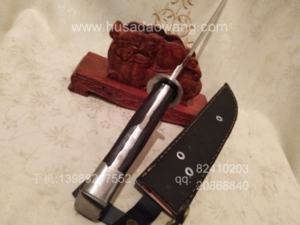 商品用料:刀条采用独家投资商进口高档材料 护手尾端手工加钢 优质牛皮鞘