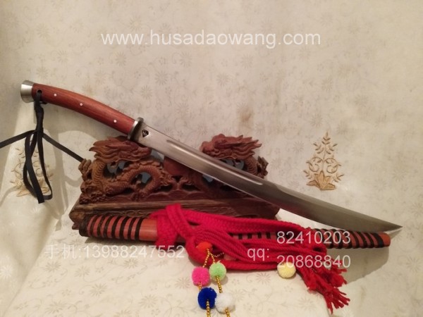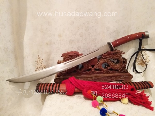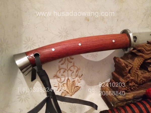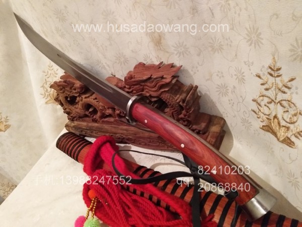 商品用料:刀条采用独家投资商进口高档材料 刀柄刀鞘为老红酸枝木