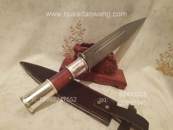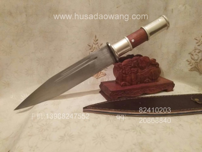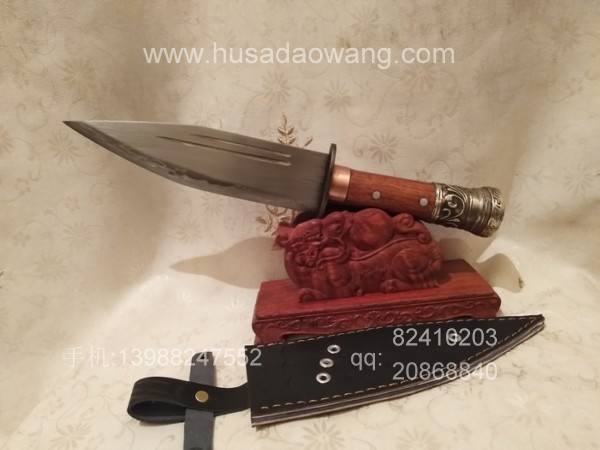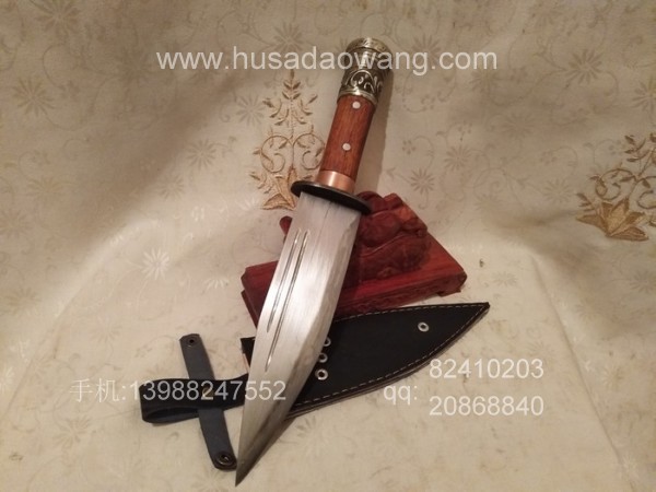 商品简介:此款刀的款式原型为1991年在我国上映的国内著名武侠片《双旗镇刀客》中假侠客草上飞手中的一把刀,双旗镇刀客这部电影是非常值得一看的!影片荣获1991年中国电影金鸡奖最佳美术奖、1992年东京第三届夕张国际惊险与科幻电影节最佳影片大奖、1992年第五届《中时晚报》电影奖商业映演类年度大陆优秀电影奖、1993年柏林电影节国际影评奖,如此厚重的电影堪比《黄土地》、《红高粱》。没看过也可以在网上搜这部片子。这款刀造型犀利,优秀匠人纯手工锻打制作,纯手工打磨,牛皮刀鞘,非常适合收藏把玩,和户外使用,欢迎大家定制!