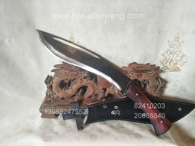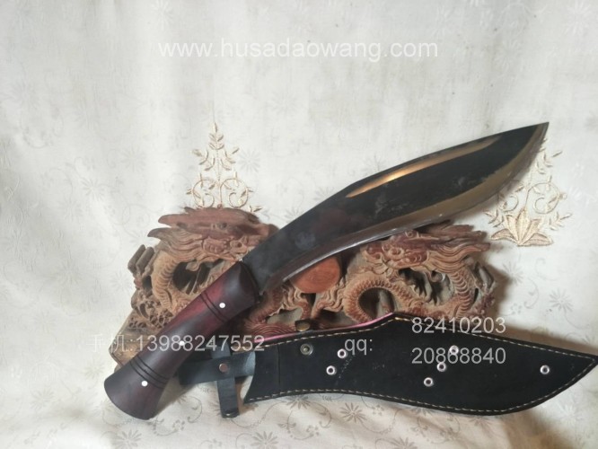 产品介绍: 此刀由户撒优秀工匠全手工打制的极品尼泊尔弯刀,刀身采用精挑军用汽车弹簧钢板手工锻打淬火,此刀粗犷锋利,刀的设计完全采用尼泊尔弯刀的标准形状,表面保留煅烧黑色,整体更觉粗犷强悍,劈砍有力手感舒适,性能大大超过了正品尼泊尔弯刀,是广大驴友和户外运动者最钟爱的理想开路刀具。此刀刀鞘采用本站独家定制的双层纯牛皮,非常结实耐用。户外运动者的不二选择。