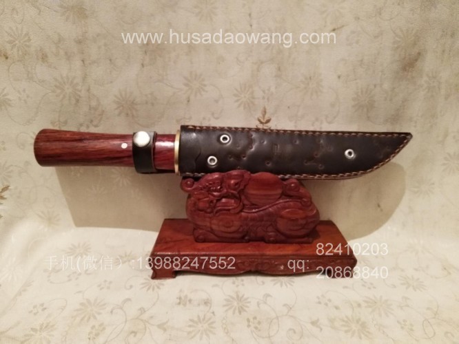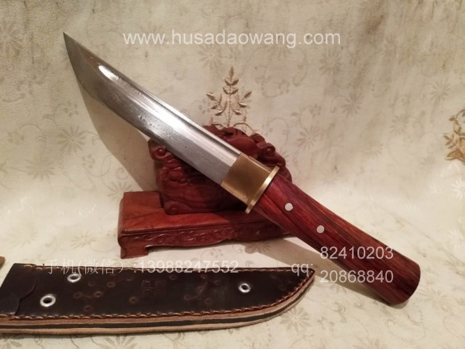 商品详情:此刀为被列为云南省级非物质文化传承人的著名刀匠杨茂芳全手工锻打制作,刀条钢材为精选高碳锰钢,刀条千锤百炼而成,刃口局部淬火,刀条采用手工平磨,切割更为顺畅,独到的淬火方式使得刀条刚柔相济,粗锋砍铁不伤,细锋的话可达到轻松刮毛,配手工缝制的牛皮鞘,更加便携,刀柄为优质红酸枝贴合手型制作,握感舒适。此刀户外车载防身皆可,欢迎大家订购!