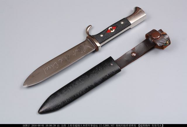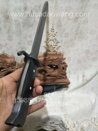 商品简介:此刀原型为二战时期,希特勒授予所有希特勒青年团成员佩戴的小刀,非常具有历史意义,现在已经绝版,客户提供刀的原型,然后自己加长了刀刃,制作成的德国青年团小刀。此款小刀由户撒刀优秀刀匠采用进口百炼花纹钢纯手工锻打而成,刀身外形采用二战时期经典青年团小刀外形(不过应客户要求进行了加长,后面大家如果需要定制,可以进行缩短,但价格不变哦),传统锻打方式千锤百炼而成,刃口热处理,刚柔相济,小刀坚硬锋利,锋利可挂汗毛!刀护手和尾端加钢部分,也为纯手工磨制的花纹钢,小刀全龙骨一体结构,结实耐用,既有非常强的收藏观赏作用,又有极强的实用功能,喜欢短刀的您如何能错过,工期25天左右!