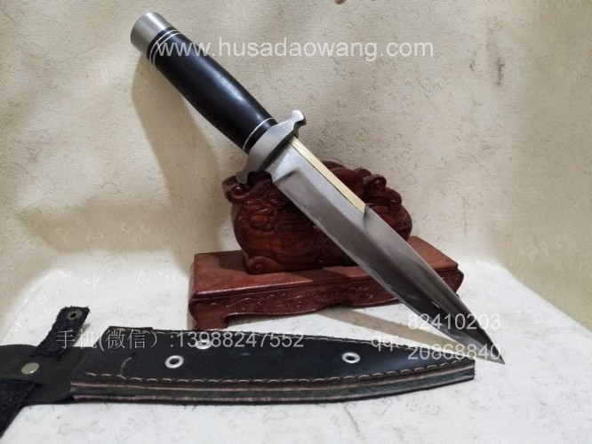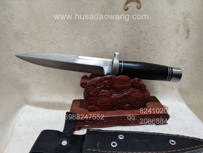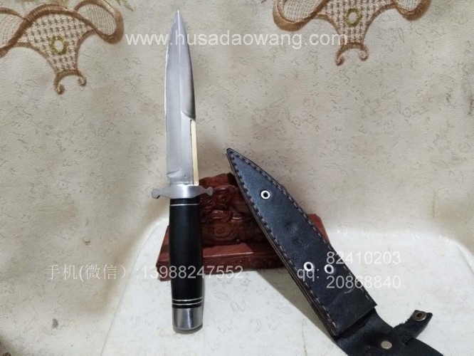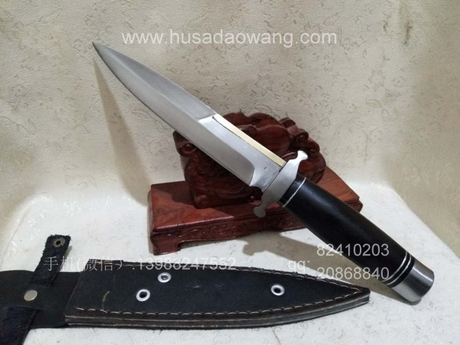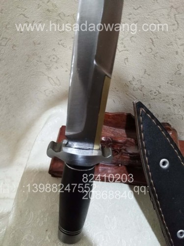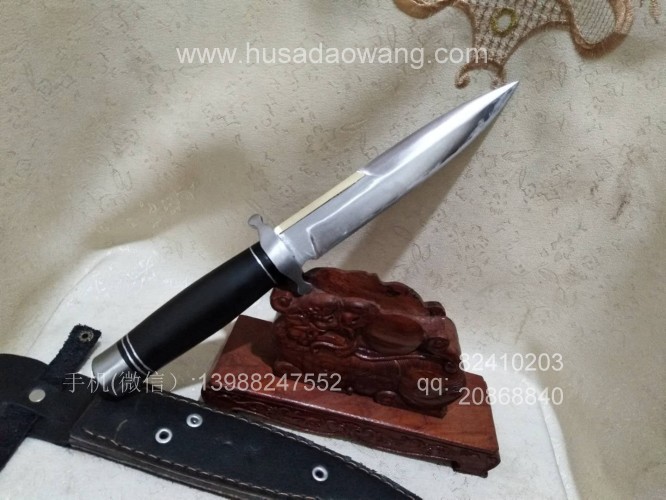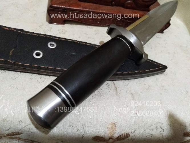 商品简介: 再也不用为手工版本昂贵的价格而错过这一经典了!!敢死队大牙签!原美国刀匠协会主席吉尔先生为敢死队电影创作的传奇刀具!此款大牙签为敢死队2里亮相最多的一把刀具,现由户撒优秀刀匠精选优质高碳锰钢全手工锻打制作,每个部件均为手工制作,包括护手和尾部加钢,非常费事费力,此刀刃口坚硬锋利,可刮汗毛!手感也非常舒适!请大家抓紧定制收藏!