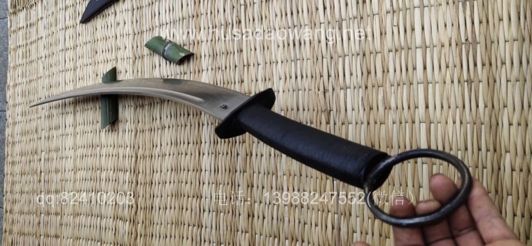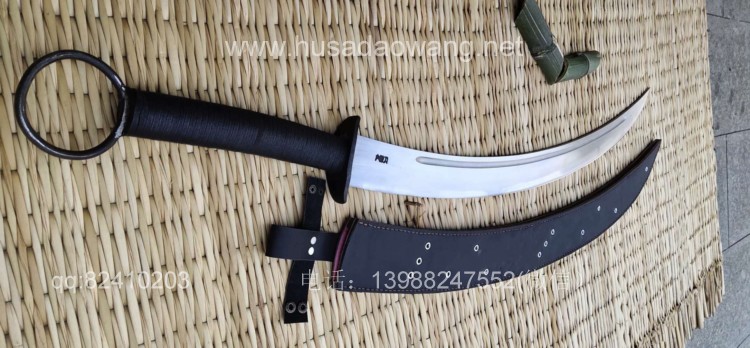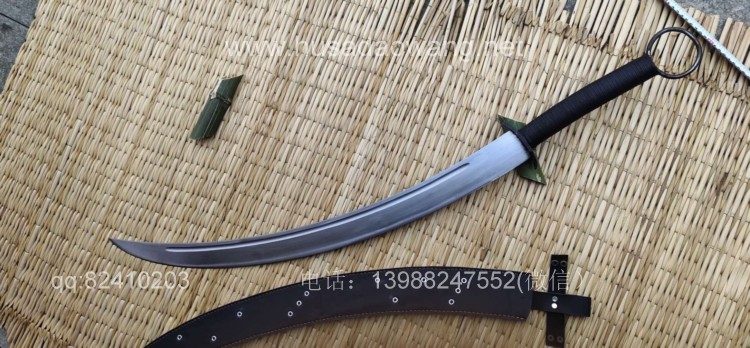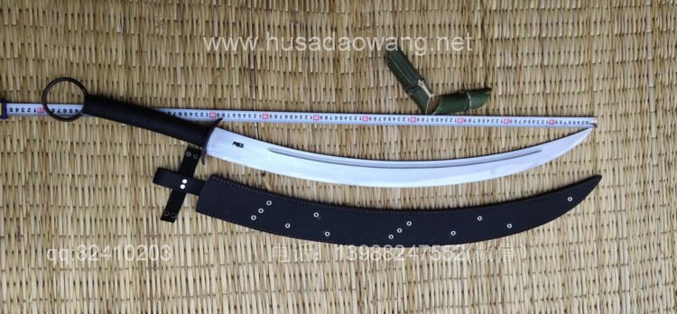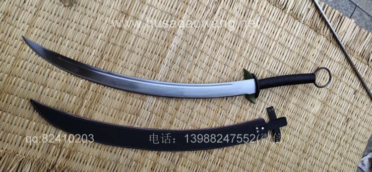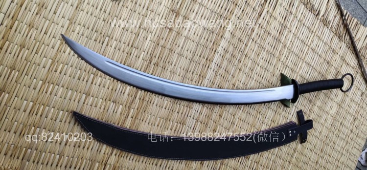 商品名称:大号户撒蒙古弯刀 商品规格:刃长80厘米左右 全长110厘米左右 厚度1厘米左右 商品简介:此刀由户撒优秀刀匠项老赛大徒弟精选高弹锰钢亲手锻打而成,刀条外形采用古代战场上令敌人见之胆寒大名鼎鼎的蒙古弯刀原型,刀型流畅,挥砍杀伤面极大,刀条一体全龙骨锻造,可以一辈子用下去!此刀有蒙古冷兵收藏爱好者的大爱!如今能得到这种刀的机会已不多,请抓紧时间收藏