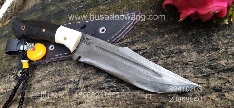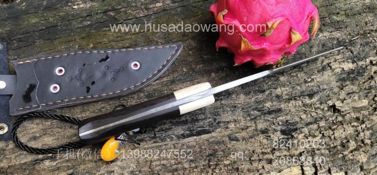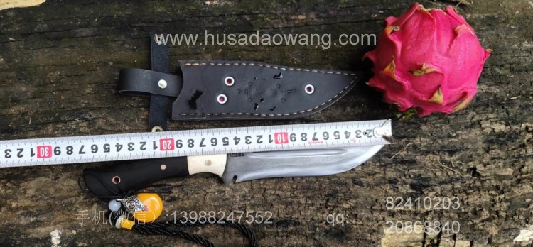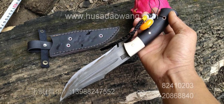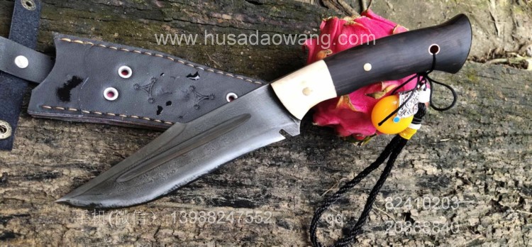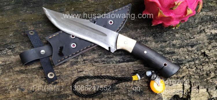 商品名称:户撒刀王(阿昌刀)百炼钢鹿角黑檀精品猎刀 商品规格:刃长15厘米左右 全长27厘米左右 厚度5毫米左右 商品简介:此刀为户撒优秀刀匠精选百炼花纹钢全手工锻打而成,刀型流畅犀利,刀 背假刃更增强了此刀的穿刺能力,刃口经过匠人三道手工冷磨,坚硬锋利,粗锋砍铁 不伤,细锋可以锋利刮毛,刀柄采用野生鹿角和黑檀木贴片,手工制作而成,一体全 龙骨刀身,更加结实耐用,此刀深受广大刀友喜爱,户外的好帮手!