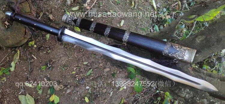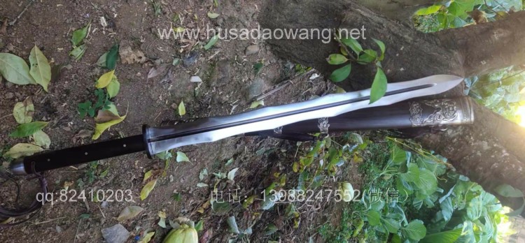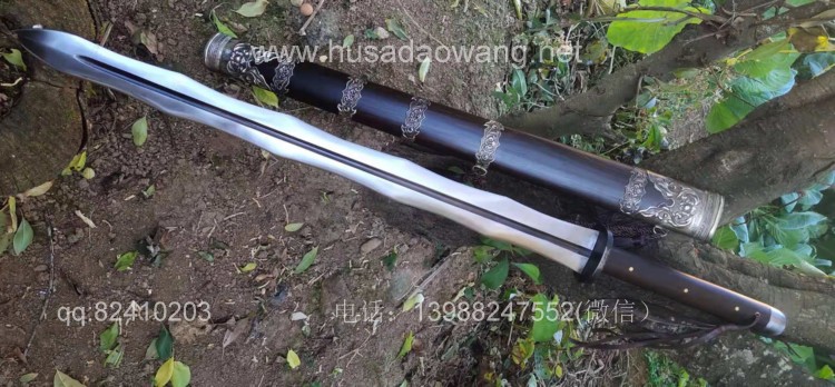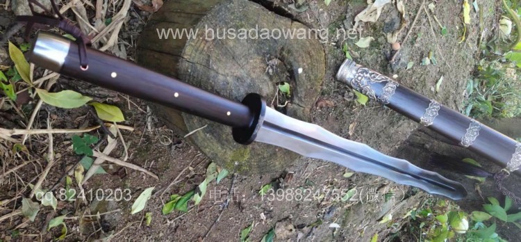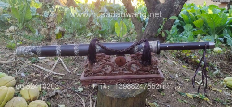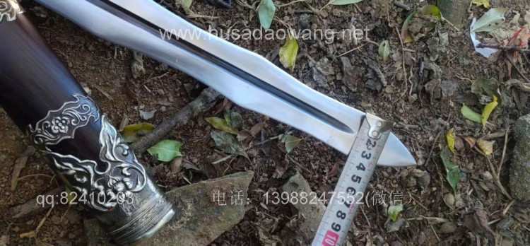 商品说明:此刀为户撒刀省级非物质文化传人杨茂方全手工锻造而成,刀条采投资商独家提供的高档进口钢材,此种钢材在经过多重进口钢材对此测试以及和当地各种钢材测试中硬度和防锈能力来说是户撒当今最为顶尖性能的钢材,没有之一。经过反复锻打和独特淬火方法后,钢材可以在锋利状态下砍铁,这点是其他钢材所难以做到的,此剑采用独特波浪形刃口,刃口长度和坚固度都更为加强,刀条一体全龙骨制作结实耐用,尾端手工加钢,必要时可做锤击使用,刀柄刀鞘为高档非洲黑檀木手工制作外包缅银更显高档贵气,是送礼收藏实用的不二选择!