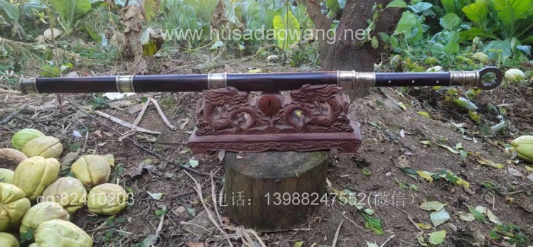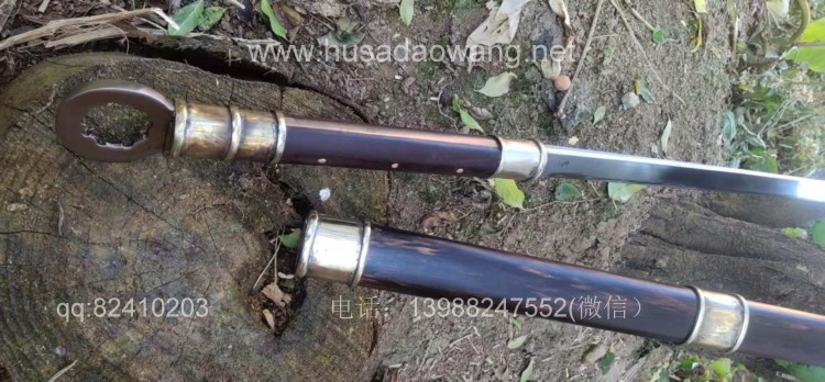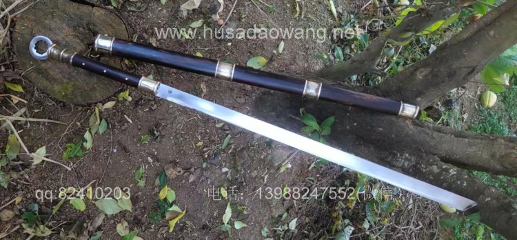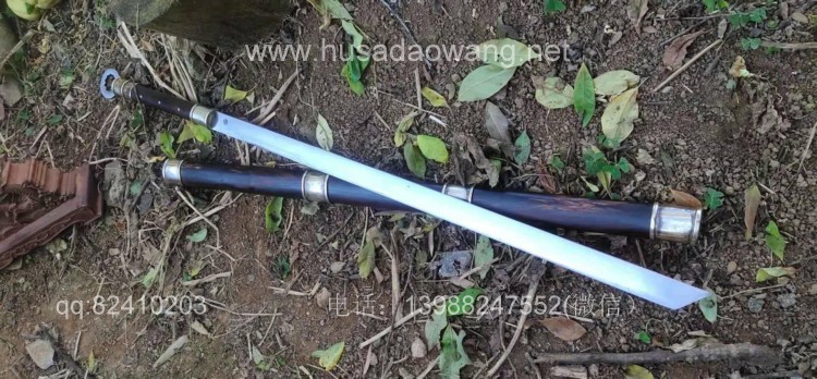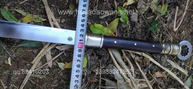商品名称:户撒刀王(阿昌刀)极品汉代环首刀 商品规格:刃长68厘米左右 全长97厘米左右 厚度9毫米左右 商品说明:此环首刀为老客户自定义长度尺寸后定制,刀型参照西汉时期叱咤风云的一代利器环首刀为原型手工制作,刀条为户撒刀名匠杨茂方采用军用解放车弹簧板全手工锻打并配方淬火而成刚柔相济,完全具备了古代战场冷兵器的强悍和实用性,性能更有过之而无不及,整刀包括环首为一体手工锻造,刀鞘刀柄为优质黑酸枝木手工制作外包仿古缅银而成,简洁不失大气,这款刀收藏和把玩价值极高,具有独到的气质和审美观。