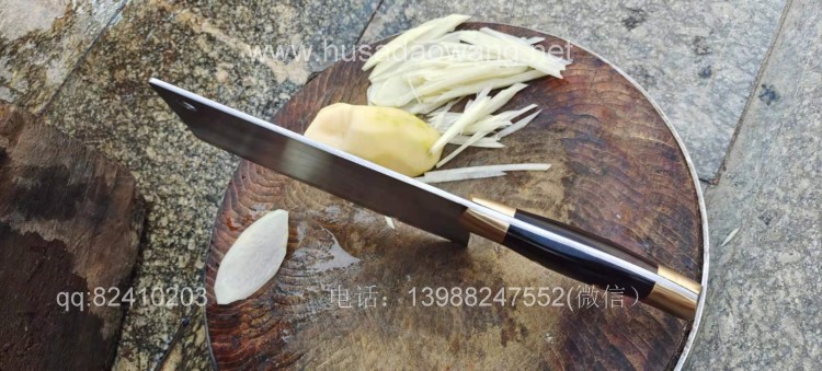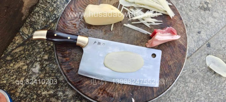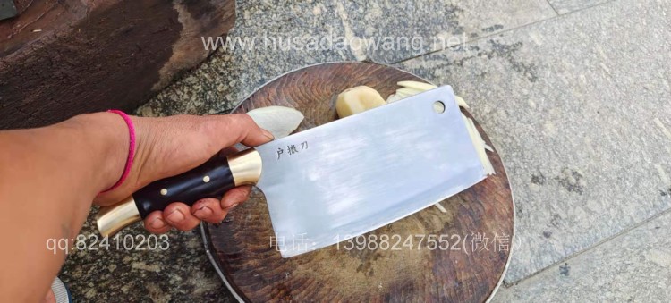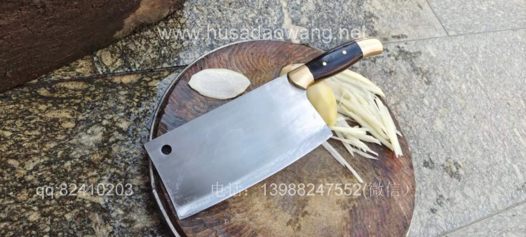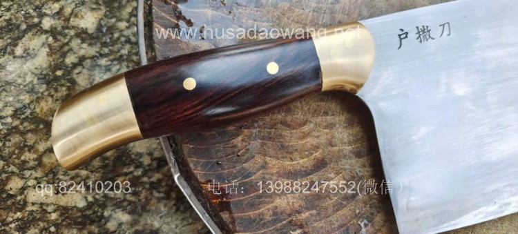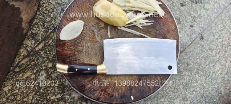 商品简介:此菜刀为精选进口不锈钢!采用户撒传统锻造工艺反复锻打而成,刃口局部淬火,以达到刚柔相济作用,刃口采用人工冷磨以防刃口退火!并且采用不同目数的磨石依次打磨,达到锋利刮毛的锋利度,使用更加得心应手!刀柄采用上等非洲黑檀木手工制作,手柄前后两端手工镶嵌厚黄铜板,使得不仅手感舒适耐用,而且更上档次!此款菜刀刃长18厘米左右 宽度9厘米左右(全手工锻打数据会稍有变化)左右,菜刀极为锋利!为大厨设计用刀,达到可轻松剃毛过水瓶的锋利度,大厨切片非常好用!并且也符合绝大多数家庭用刀习惯,重要的是此款菜刀采用进口不锈钢锻造,不会生锈!!