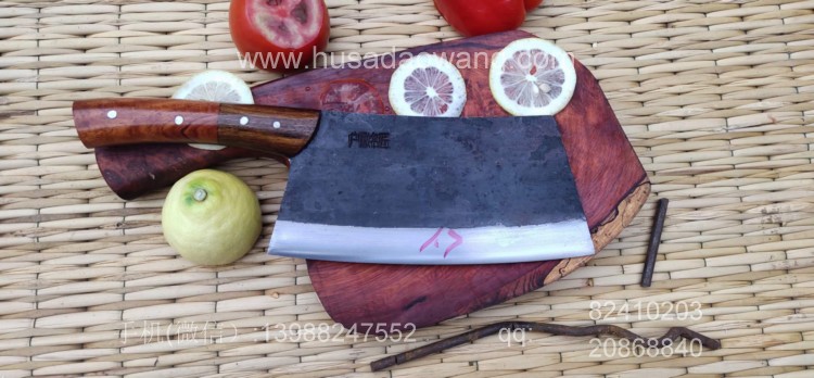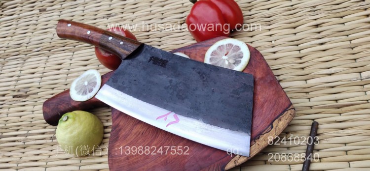 3、优质弹簧钢锻打的砍骨刀刀要注意防锈,不用时候切记用干布立即擦干刀表 面。