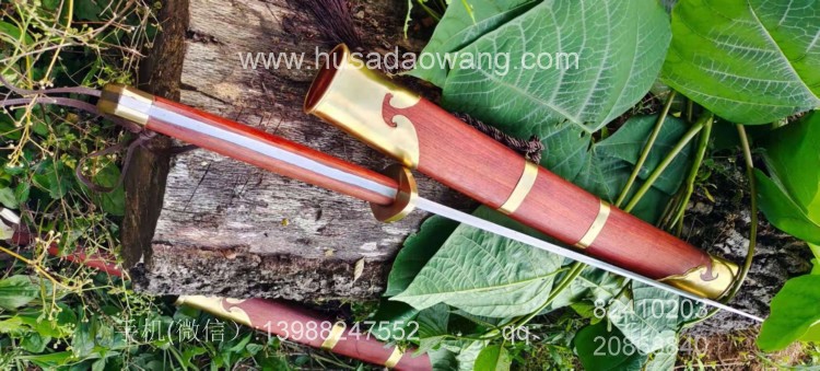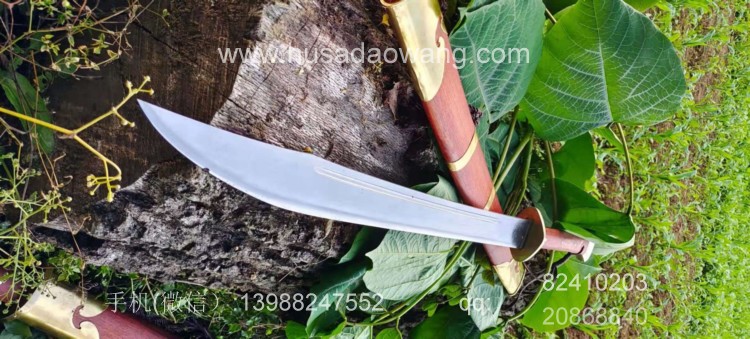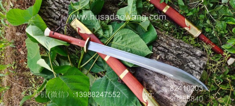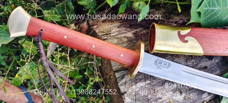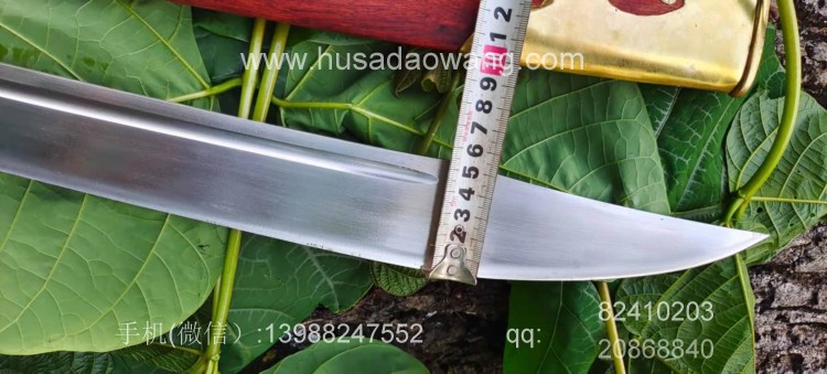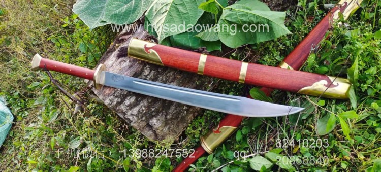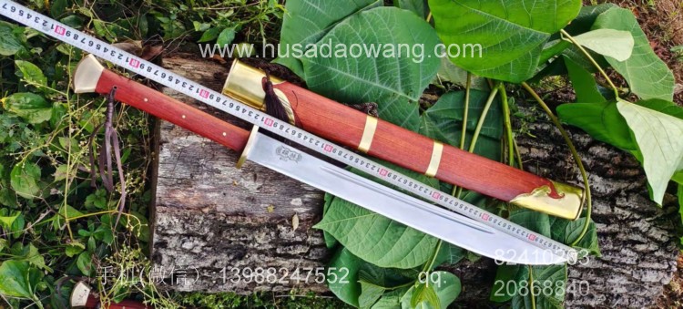商品简介:此款武术表演刀为国内太极刀协会联合定制的一款实战武术表演刀,刀体打造遵循中国古代冷兵器制作及锻造要求,刃长61厘米左右,全长83厘米左右,刀体最宽处4厘米左右,刀体采用军用解放车弹簧板全龙骨一体手工锻打坚固耐用,采用几百年来传统户撒手工锻造方法千锤百炼后配方淬火而成,刀体刚柔相济性能卓越!刀柄和刀鞘采用优质缅甸红酸枝手工制作,防开裂性能极佳!手柄及尾端采用优质实心黄铜板手工制作,用料扎实,美观苏雅!此刀被客户收到后非常赞赏,符合平时演练要求,又连续在本店定制多把。广大收藏和武术爱好者可联系我们可以按要求定制(尺寸、长短可按要求定做)!