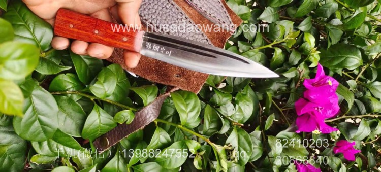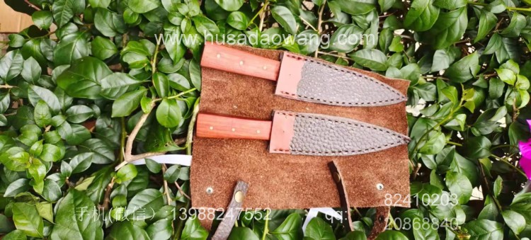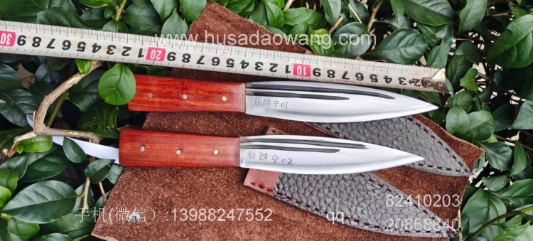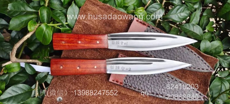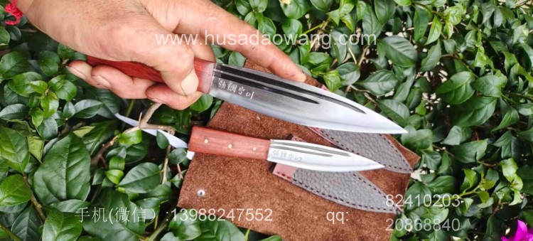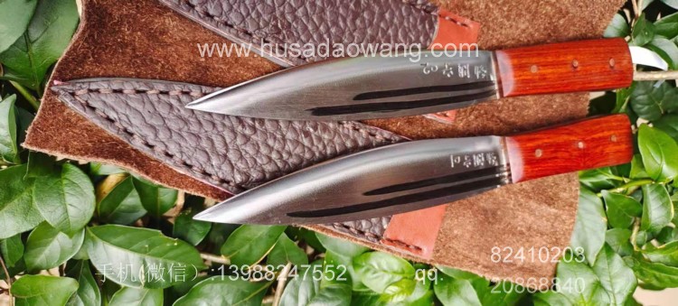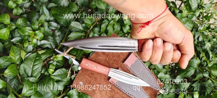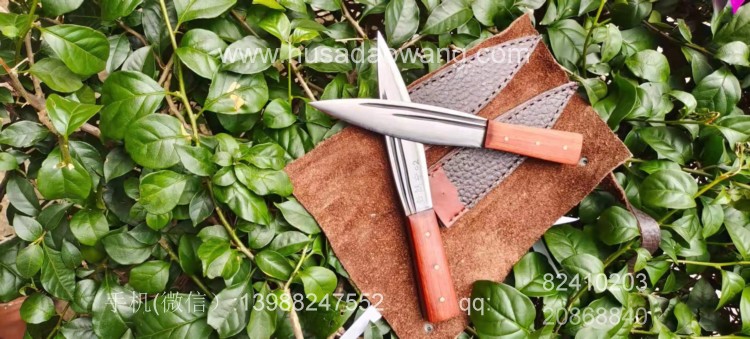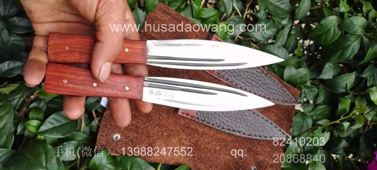 商品名称:户撒刀王(阿昌刀)手工锻打雌雄双匕首 商品规格:刃长13.8厘米左右 全长:21厘米左右 厚度6毫米左右 商品简介:雌雄双匕首是根据经常进山的户外爱好者到我处特殊定制,此刀采用精选军用解放车弹簧板纯手工锻打后深度淬火而成,刀型一体全龙骨,犀利流畅,穿刺切割能力极强,刃口坚硬锋利,粗锋砍铁不伤,细锋极度锋利轻松刮毛,一套为双刀,户外可以分工使用,更加方便!手柄为优质红酸枝,防开裂效果极佳,可应付户外恶劣环境,配双刀皮鞘! 微信:13988247552