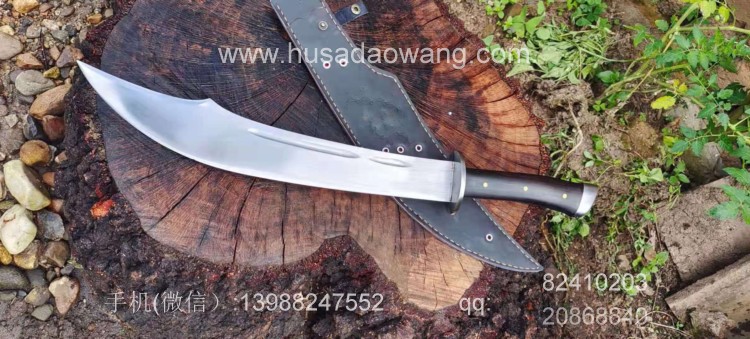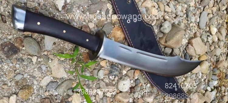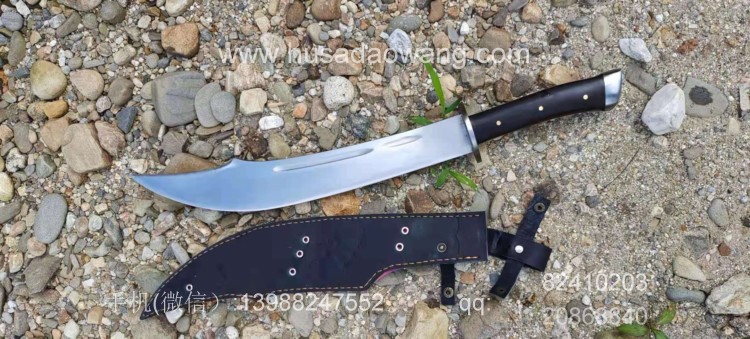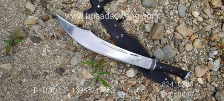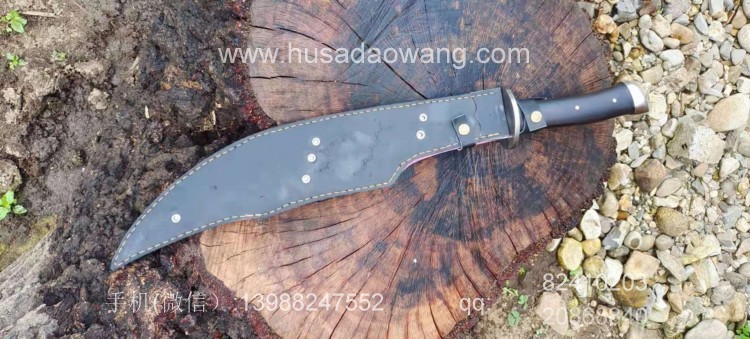商品名称:户撒阿昌刀王鬼头开山刀 商品规格:刃长39厘米左右 全长58厘米左右 厚度8厘米左右 最宽处6毫米左右 商品简介:这款刀是给客户定做的一把超强鬼头刀,客户要求刀体要承受500斤的力量,人口硬度达到58HRC以上,于是精选军用车钢料,名匠全手工锻造,配方淬火,人口刚柔相济,斩钉截铁视同儿戏,刀条一体全龙岗锻造,尾端手工加钢垫,整刀显得更加紧凑强悍!配重和手感极佳,收藏 把玩 户外三位一体! 微信:13988247552