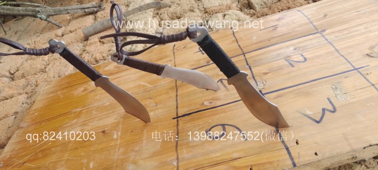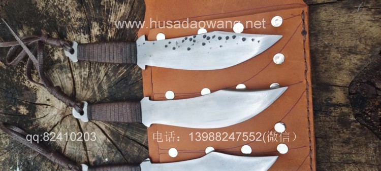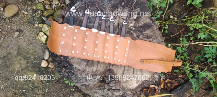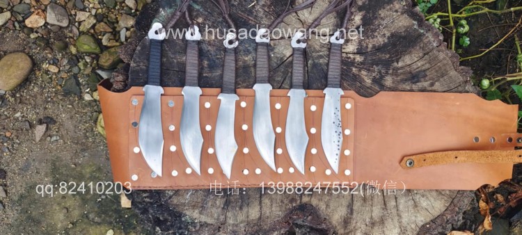 商品名称:户撒刀王(阿昌刀)手锻小李飞刀 商品规格:刃长10.5厘米左右 全长19厘米左右 商品简介:此飞刀为喜好武术的客户定制的六把一套,刀身采用优质弹簧钢一体锻打,刀型采用电视剧小李飞刀款式,造型古朴简洁,配一体牛皮套,更加方便练习和携带,此飞刀非常好掌握,稍加练习就可以百发百中,欢迎大家前来定制! 微信:13988247552