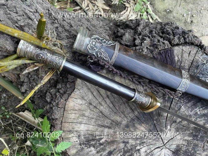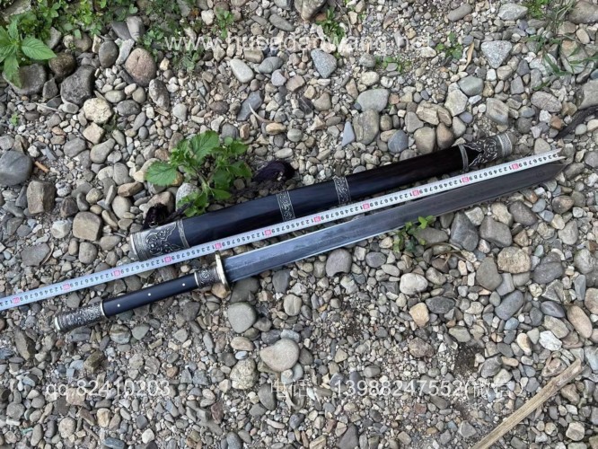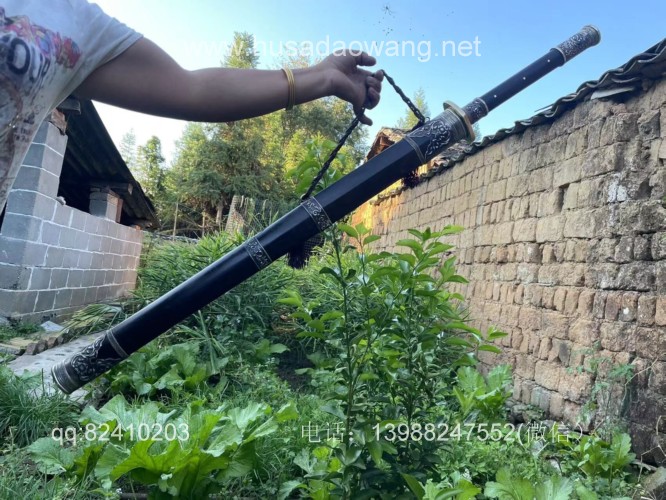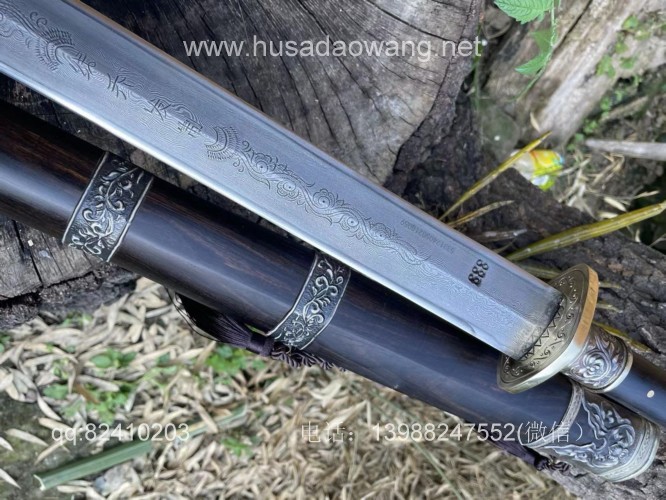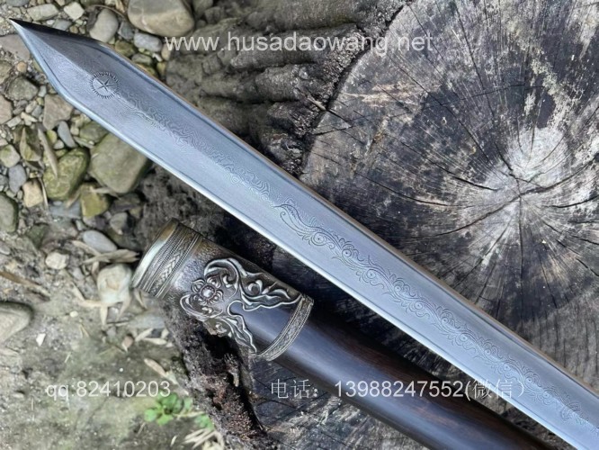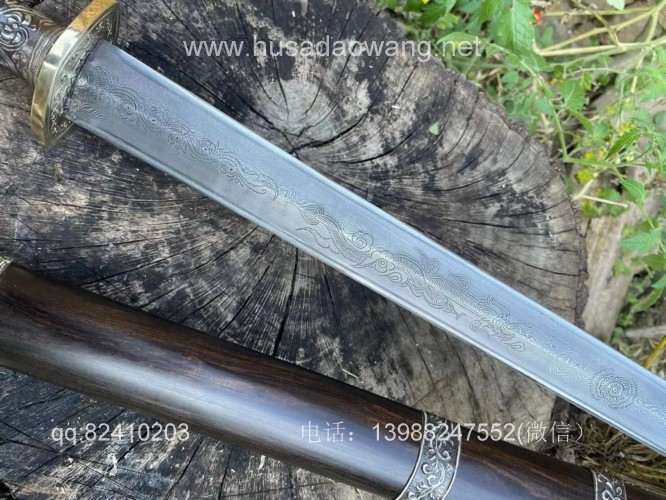 商品简介:此剑为户撒刀迪派传人线乔发采用特硬百炼花纹钢纯手工锻打并配方淬火而成,名匠独到的淬火方法使得整个剑身流畅美观,刚柔相济!一体全龙骨的结构更增加了宝剑的坚固耐用度,认真保养使用,百年不坏!剑身有乔发亲自纯手工雕刻的龙凤花草等民族性吉祥图案,更增加了宝剑的收藏价值,剑鞘剑柄为优质黑檀木手工制作,制作过程根据没把宝剑的剑身薄厚和宽窄量身制作,严丝合缝,此剑为收藏和实用为一体的极品户撒长剑!
