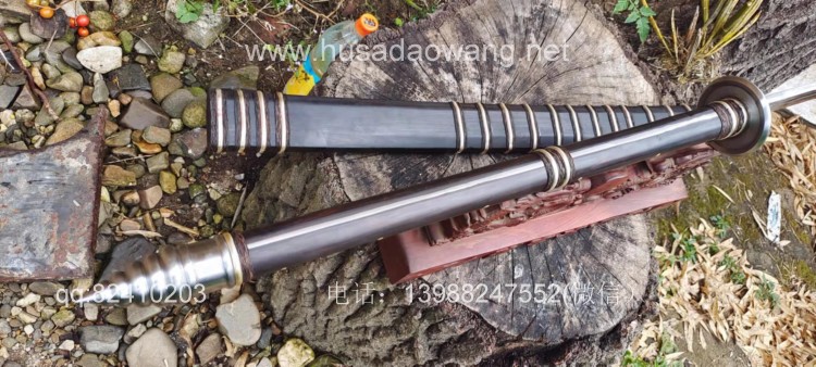 商品简介:这款极品户撒全龙骨康熙战刀是由户撒刀一流名匠杨茂方全手工锻打,刀条形状参照出土宝刀清代伟大皇帝康熙的佩刀原型打制,不过刀身比原型做了加长设计,更增加了此刀的劈砍和实战威力!刀条采用一体全龙骨结构,刀条经过名匠反复上千次的锻打,锻打成型后采用独到的淬火方式,使得刃口和刀身达到刚柔相济完美结合,斩铁截钉不在话下,刀鞘和刀柄采用优质黑檀木精心手工制作,结合紧密严丝合缝!刀鞘外部精缠综丝和铜条加固永不开胶!此刀是户撒刀爱好者收藏的不二选择!